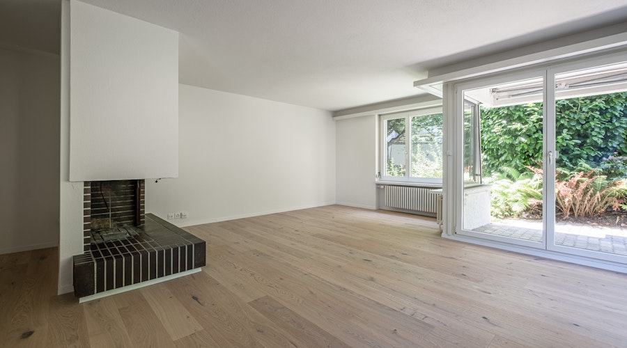 - Grosszügiges, lichtdurchflutetes Wohn-/Esszimmer (ca. 34m2) mit Cheminée