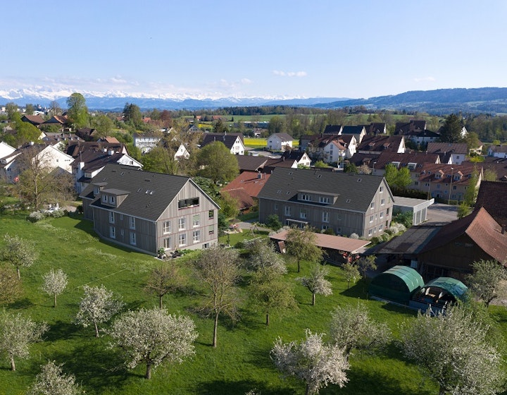 Angrenzend an die Landwirtschaftszone, nur wenige Schritte vom artenreichen Naturparadies entfernt, entstehen attraktive Eigentumswohnungen. So unaufdringlich die beiden Häuser von aussen wirken, so bestechend sind ihre Qualitäten im Innern. Das Ambiente stimmt in allen 19 Wohnungen und gewähren fürs Einrichten grosszügige Freiräume. Das Angebot variiert zwischen 2.5- und 4.5-Zimmer-Wohnungen sowie einer gemeinsamen Tiefgarage.